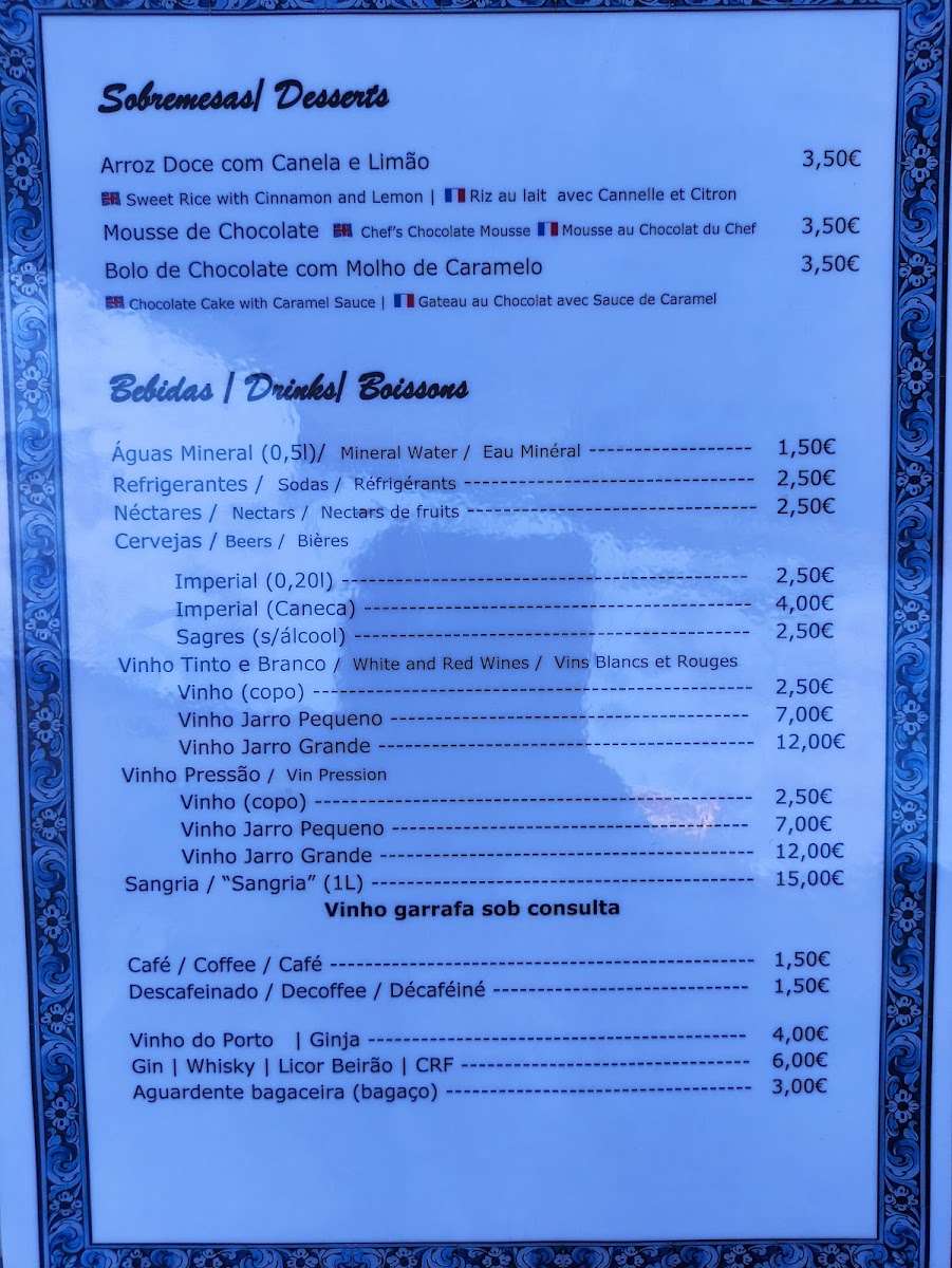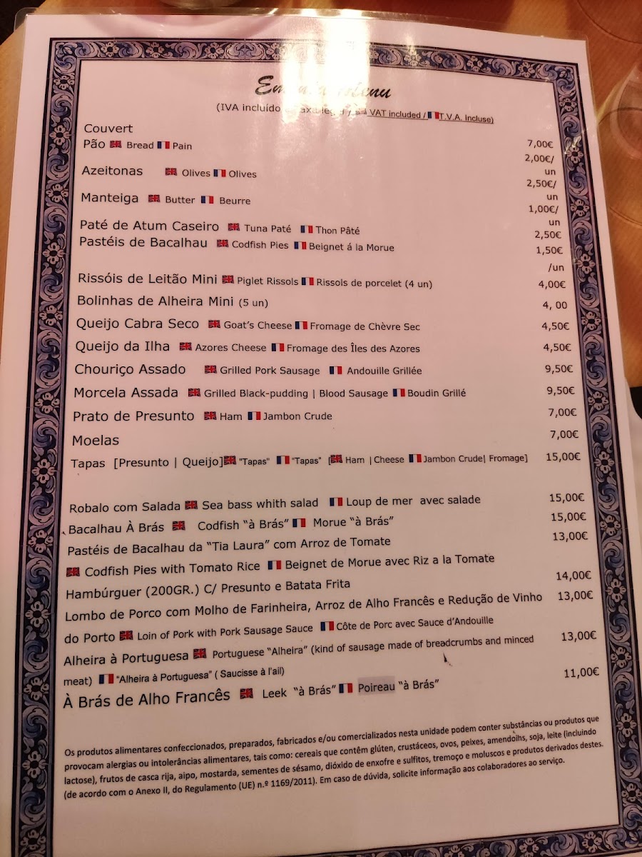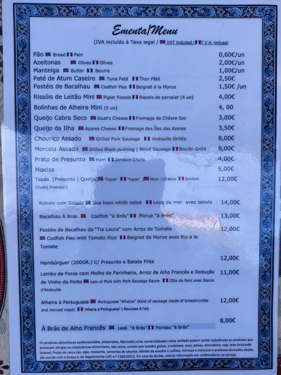 Step into the heart of Lisbon and experience the vibrant flavors of Portugal at Tasca Do Jaime D'alfama Menu. Located at R. de São Pedro 40, this charming spot offers a delightful array of traditional Portuguese dishes that will take your taste buds on a journey. Whether you're craving a comforting bowl of caldo verde, succulent grilled sardines, or the savory richness of bacalhau, there's something to satisfy every palate. The menu features a perfect mix of classic favorites and local specialties, all prepared with fresh ingredients and a touch of love. Every dish is thoughtfully crafted to bring out the essence of Alfama’s culinary traditions, inviting you to savor the authentic tastes of Portugal. From small plates to heartier meals, the diverse offerings are perfect for sharing with friends or enjoying on your own.